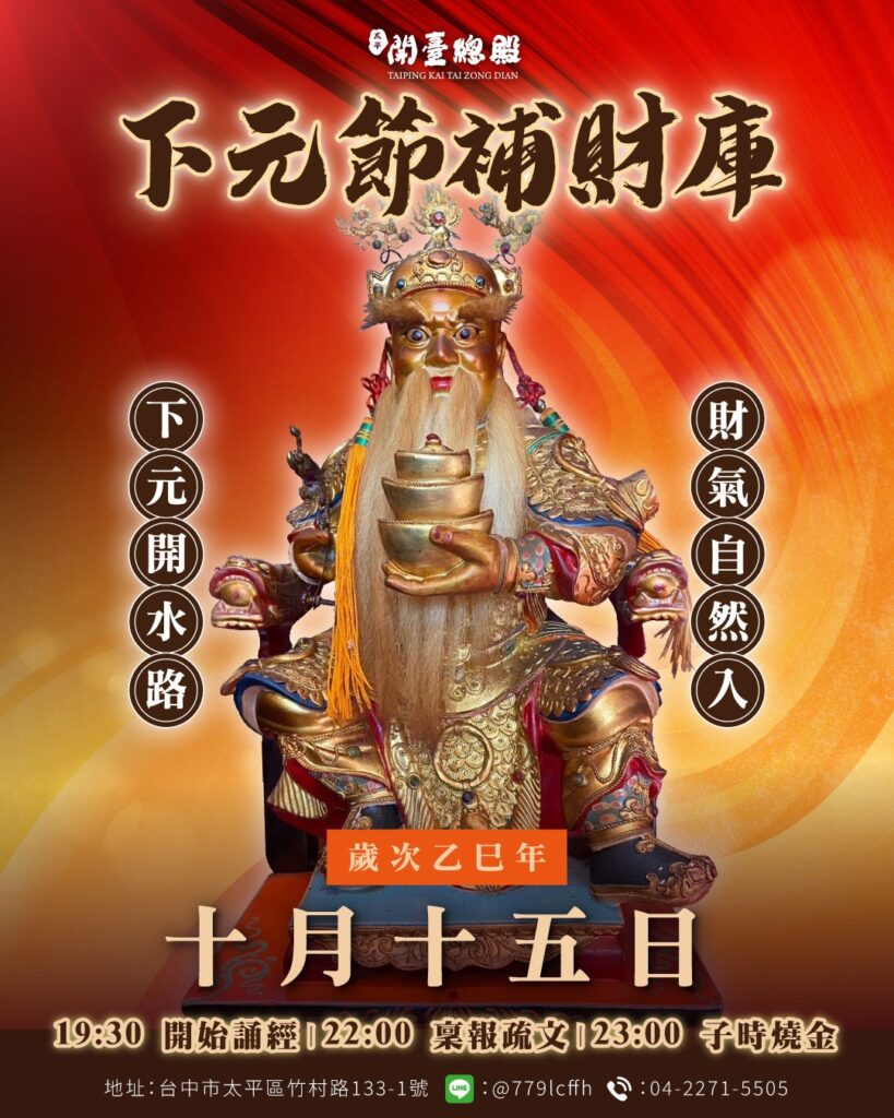 這一天適逢「下元節」,是開水路、增財氣、轉運勢的最佳時機。