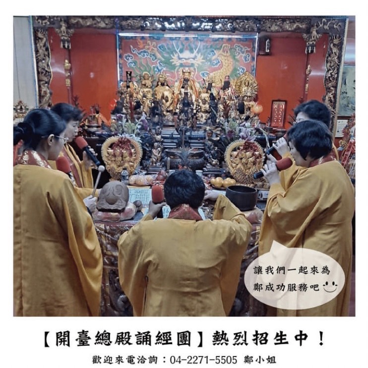 誦經團招生中! 如果你對宗教、修行與功德累積有興趣,歡迎加入我們的 開臺總殿誦經團,一起為 開臺聖王鄭成功 服務。